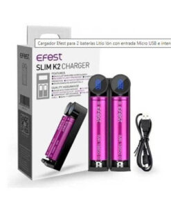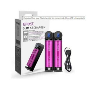 The Efest SLIM K2 Intelligent Charger Charger is a 2-port portable smart charge with a 1.0A fast charge specially designed to charge batteries of different sizes and comes with multiple protections so you can charge safely. The Slim K2 charger can be small, but it is built with the highest quality. The steel cathode provides low resistance and the hard chrome is applied to provide a more precise load voltage.
